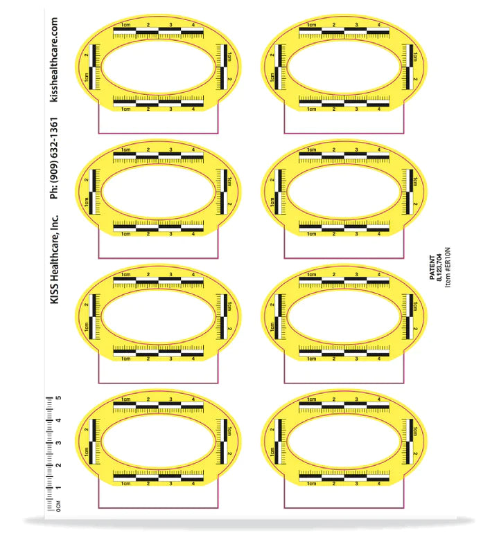 The KISS System scales bullet holes and ricochets to reconstruct the crime scene and create a professional presentation to the jury. They allow you to more easily see the bullet strikes from the shooter's perspective. Provides better visualization of the individual holes or the entire pattern. They will speed up your assessment. With multiple scales on a sheet, the KISS System is very cost-effective in even the most intense shooting scenes.