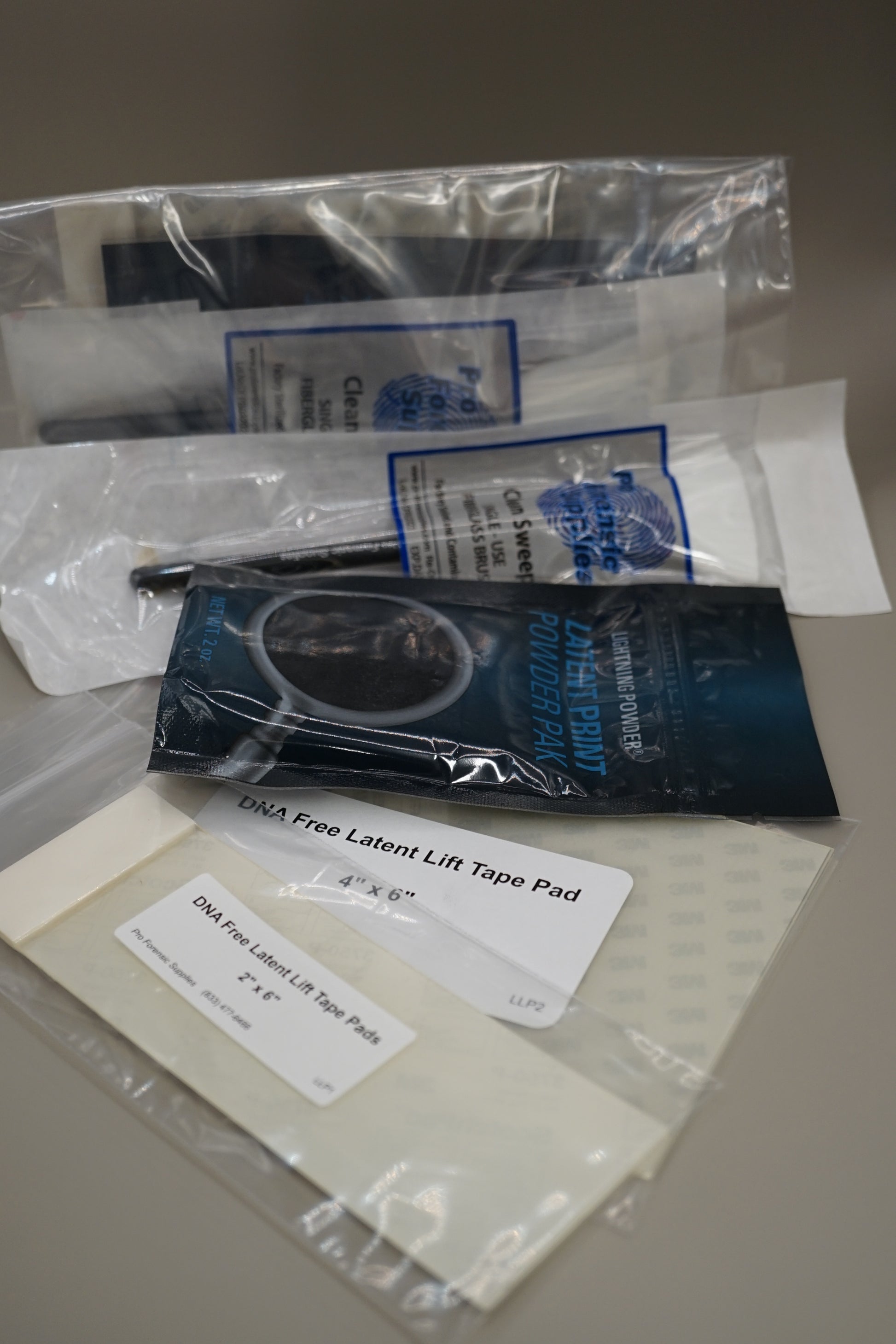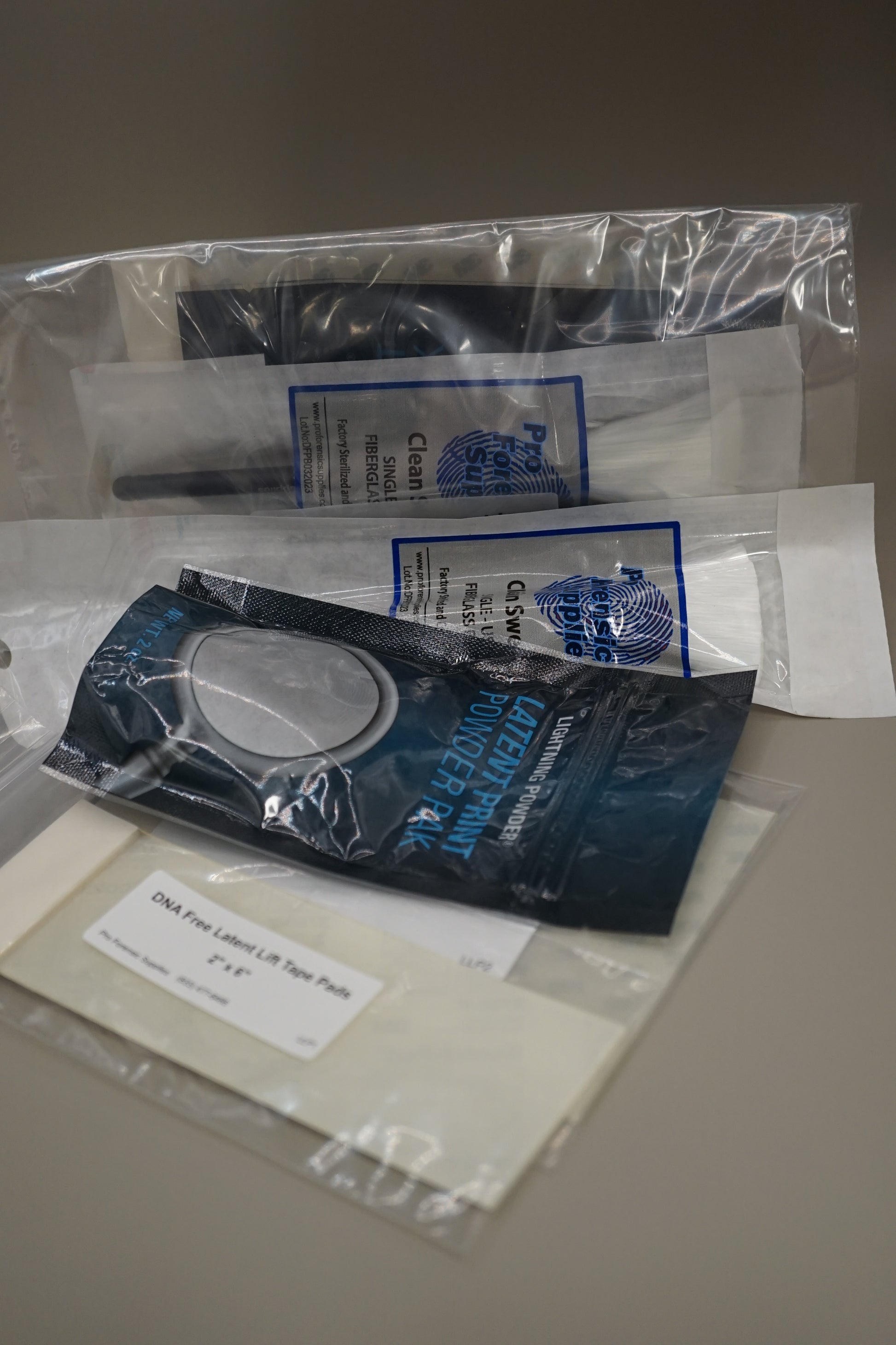 All items within the kit may be booked into evidence to ensure all forensic evidence has been collected. Trace evidence may be captured within the Clean Sweep Fingerprint Brush and mixed in the Latent print Powder Pak which may be analyzed at a later date.